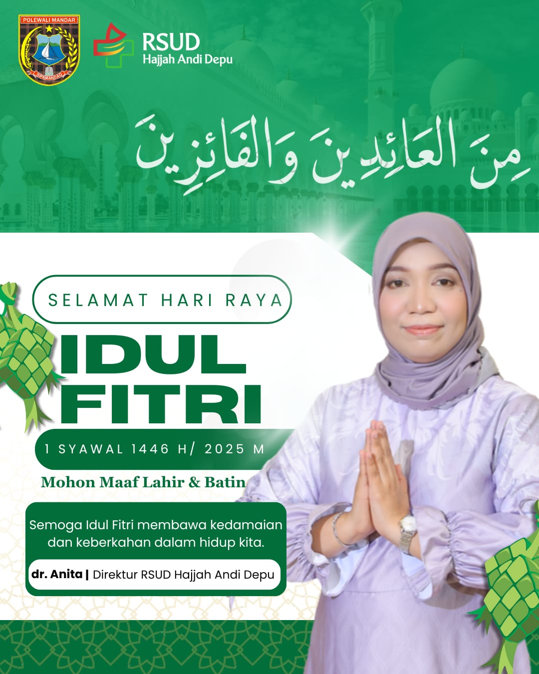 Kami segenap keluarga besar RSUD Hajjah Andi Depu mengucapkan:Mohon maaf lahir dan batin.Selamat Hari Raya Idul Fitri Tahun 1446 H/2025 M. Semoga hari raya ini membawa keberkahan dan kebahagiaan bagi kita semua....